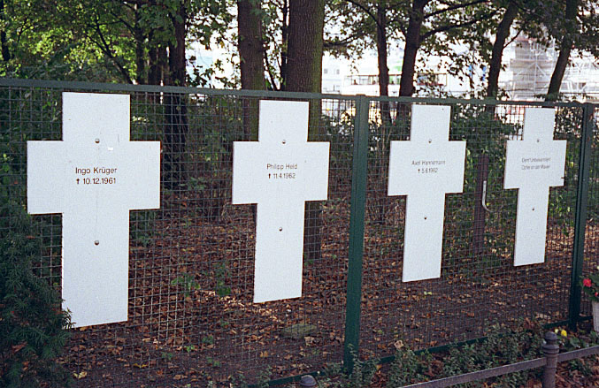 「ブランデンブルク門」北西の金網に作られた墓碑。