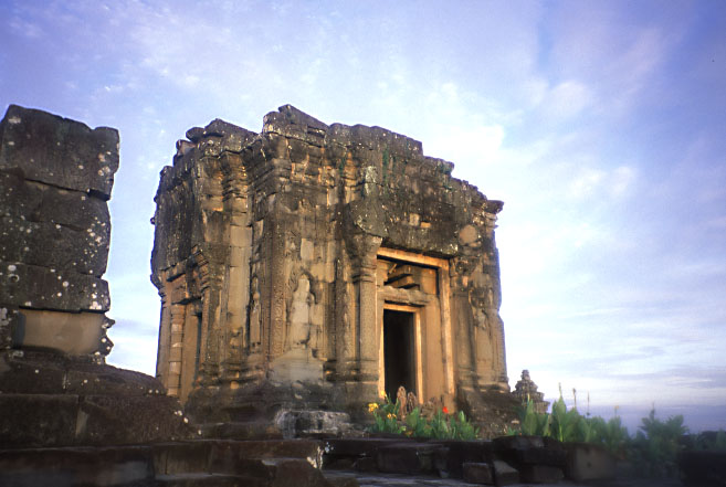 アンコール・トムとアンコール・ワットの ほぼ中間部の西側に位置する 「プノン・バケン(バケン山)」。 小高い丘の頂には小さな遺構があり、 ここから見る朝日と夕陽は美しい。